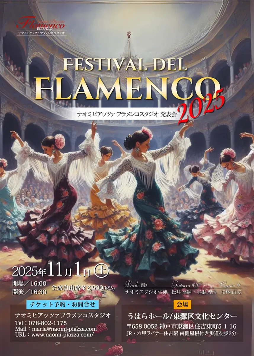 KOBE◆KATSU登録団体のナオミ・ピアッツァフラメンコクラブです。下記の日時で当スタジオのフラメンコ発表会を行います。「フラメンコって聞いた事はあるけど、どんな踊りかな?」「イメージはできるけど、音楽や衣装はどうなんだろう?」と思っている方、実際にフラメンコを観てみませんか?この発表会は日頃レッスンしている生徒や講師が様々なフラメンコの演目を踊ります。生の踊り、音楽、熱いパッションにぜひ触れてみて下さい!