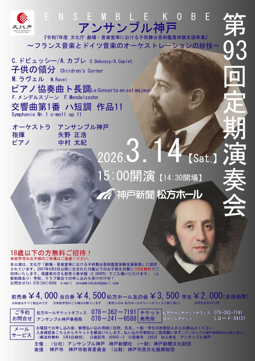 「アンサンブル神戸」による「第93回定期演奏会」の無料ご招待について(こうべジュニアオーケストラ)