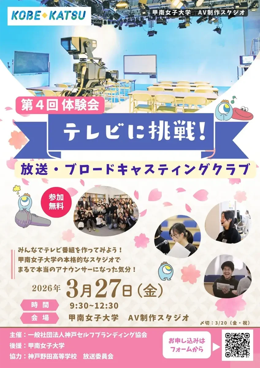 今回の会場は、甲南女子大学。本格的なAV制作スタジオをお借りして、楽しい体験会を開催します。